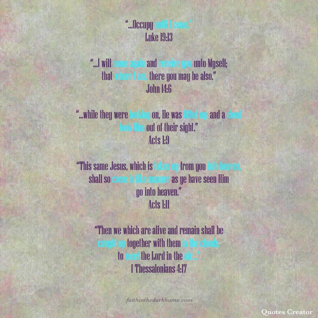 We just have to be patient and trust Him a little while longer before the Time of the End, then finally, His return. Everything will be played out according to what has been written.