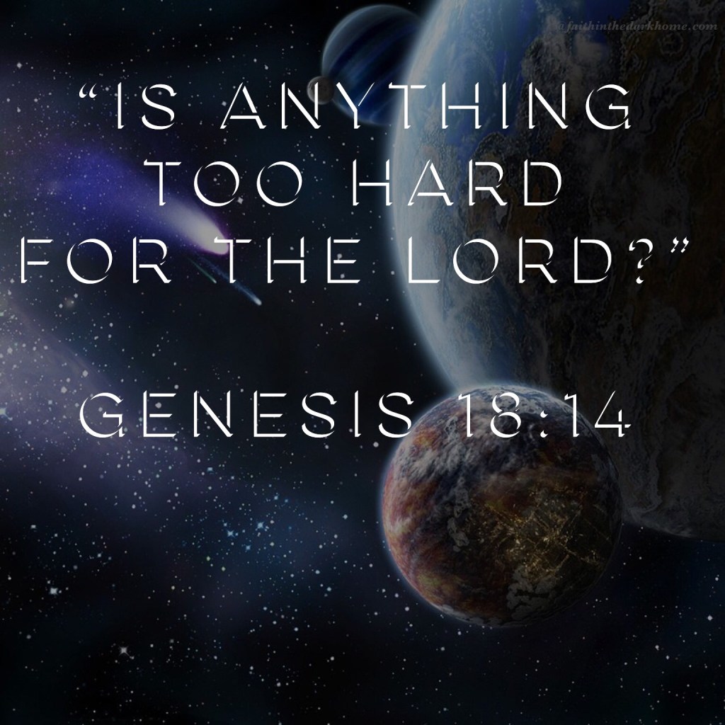 NOTHING is too hard for Him. NOTHING and NO ONE can stop what God has ordained (Is. 14:27). “Even from Eternity I AM He; And there is none who can deliver out of My Hand; I act and who can reverse it (Is. 43:13)?”